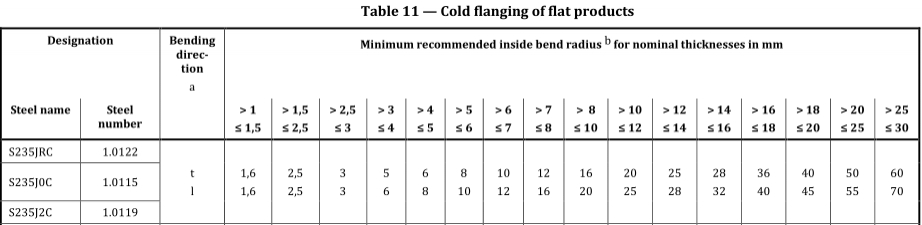 平板產(chǎn)品的冷翻邊-材料厚度與最小彎曲半徑