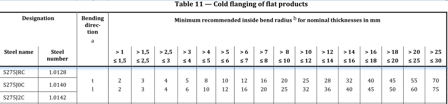 平板產(chǎn)品的冷翻邊-材料厚度與最小彎曲半徑