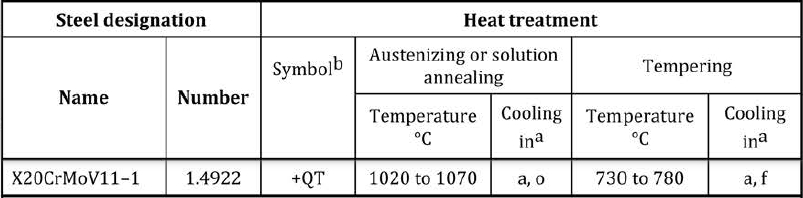 熱處理制度(僅供參考)QT= quenched and tempered; a = air; f = furnaced; o = oil.