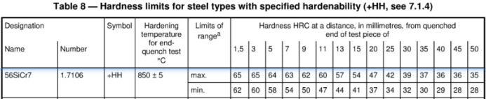 | 對應(yīng)標準 | EN  10089-2002 調(diào)質(zhì)彈簧用熱軋鋼 交貨技術(shù)條件 Hot rolled steels for quenched and tempered springs; technical delivery conditions |